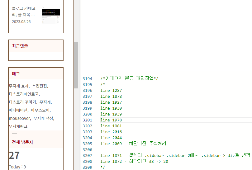 다른 분류들은 </s_sidebar>와 side-bar 클래스의 div를 추가해줬다.